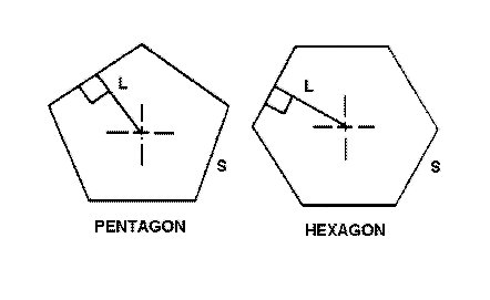 Area of a regular polygon = # of sides ( (side length x bisector length) / 2)